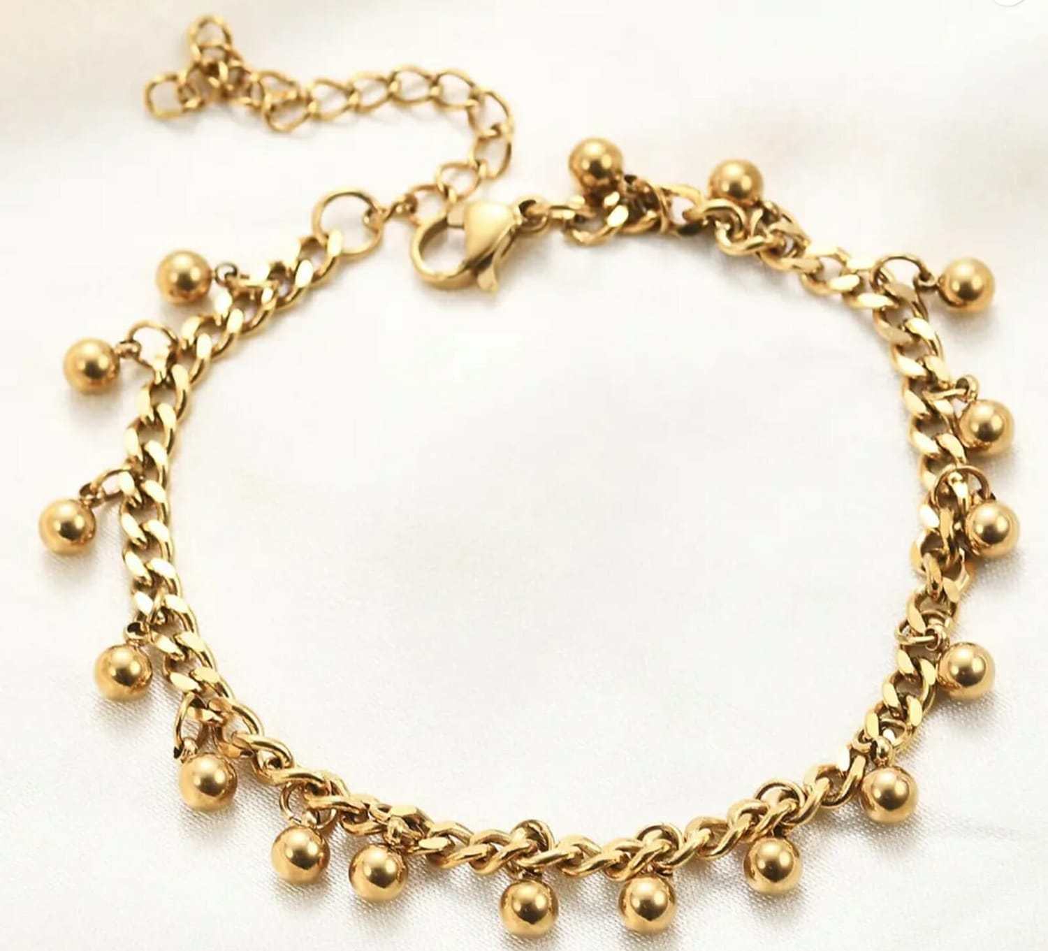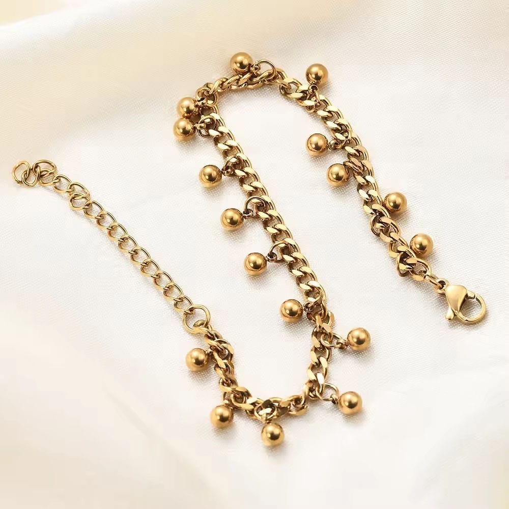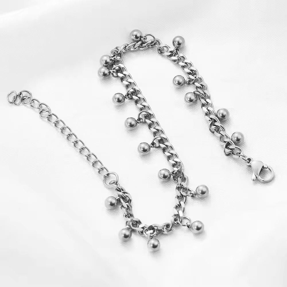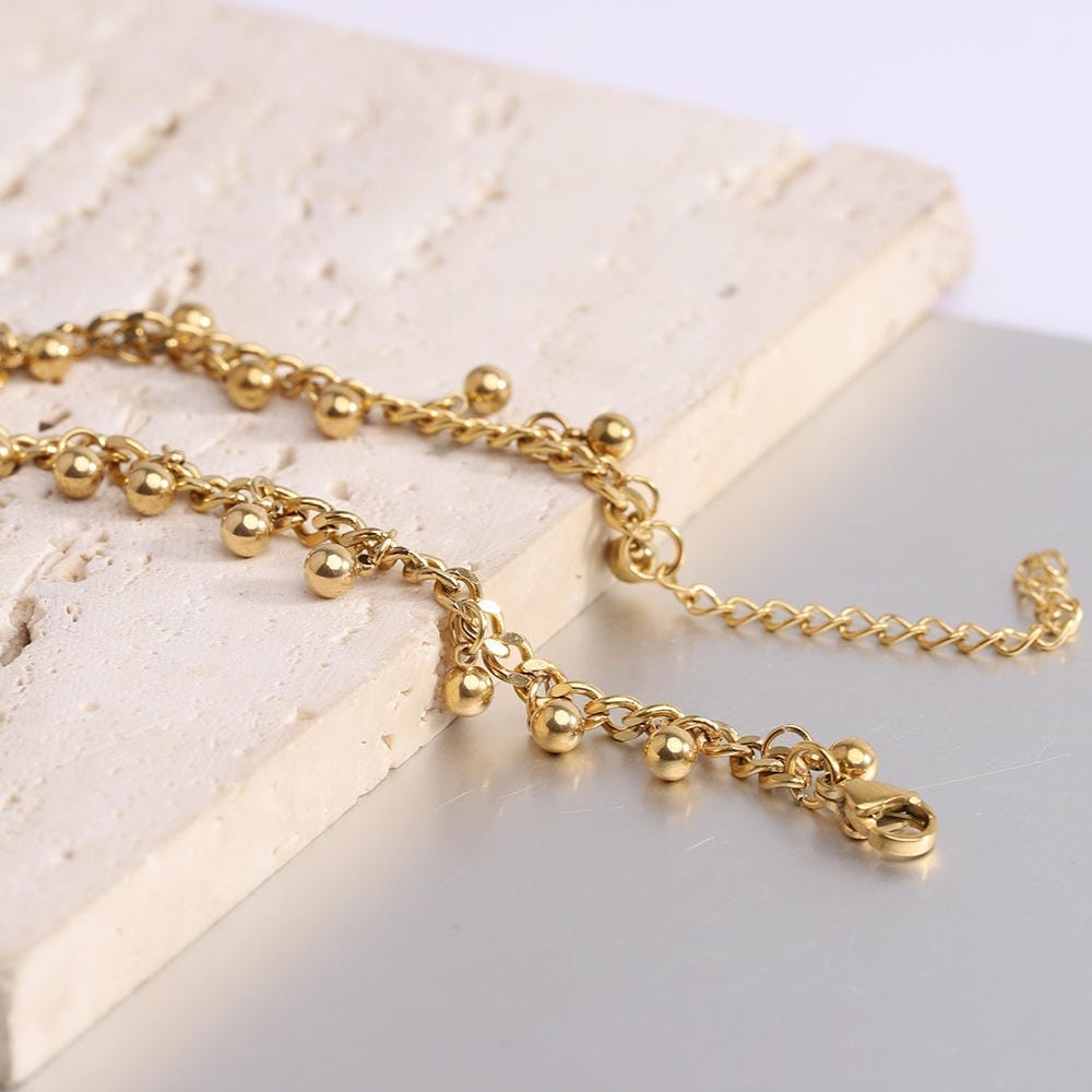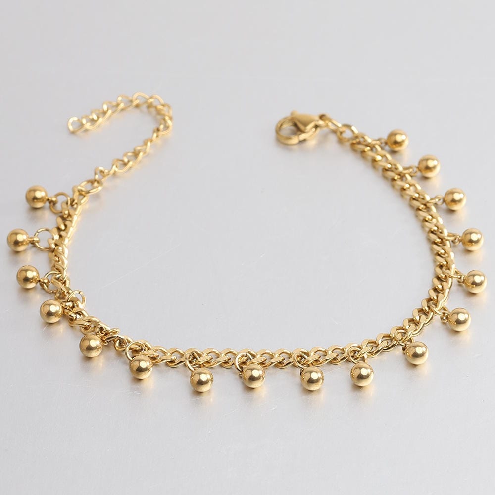 This 2024 Trendy Beaded Tassel Chain Bracelet is crafted from high-quality stainless steel, featuring an elegant gold or silver finish.