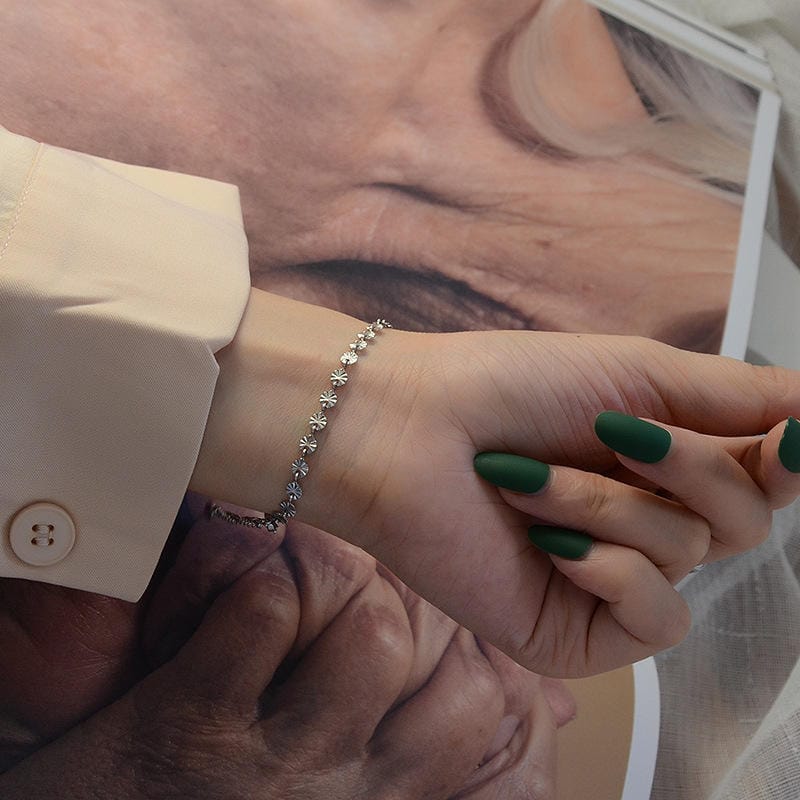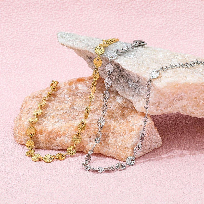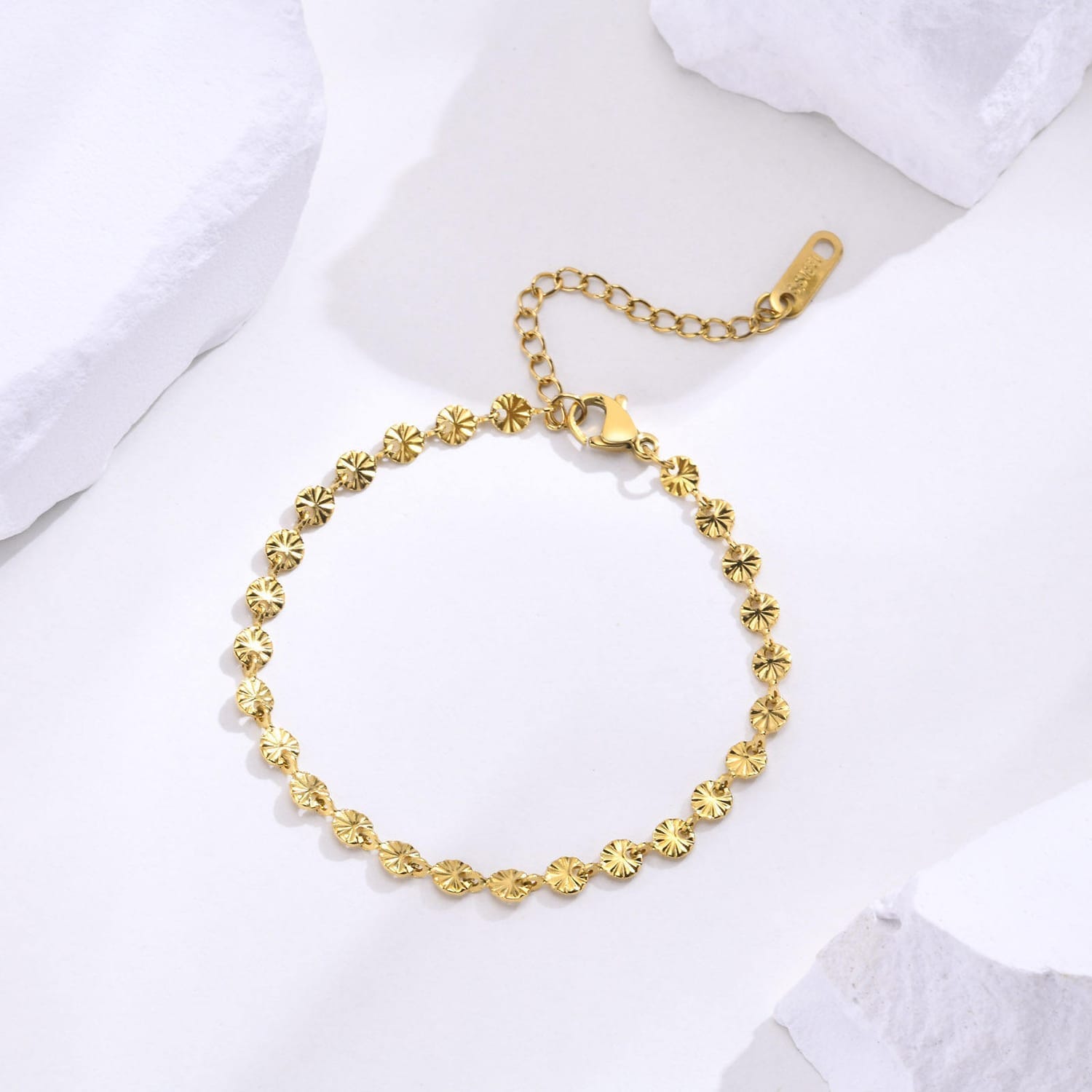 Stainless Steel Snow Flower Bracelet featuring 18K Gold Plated & Steel Color, perfect for anniversaries, weddings, and parties.