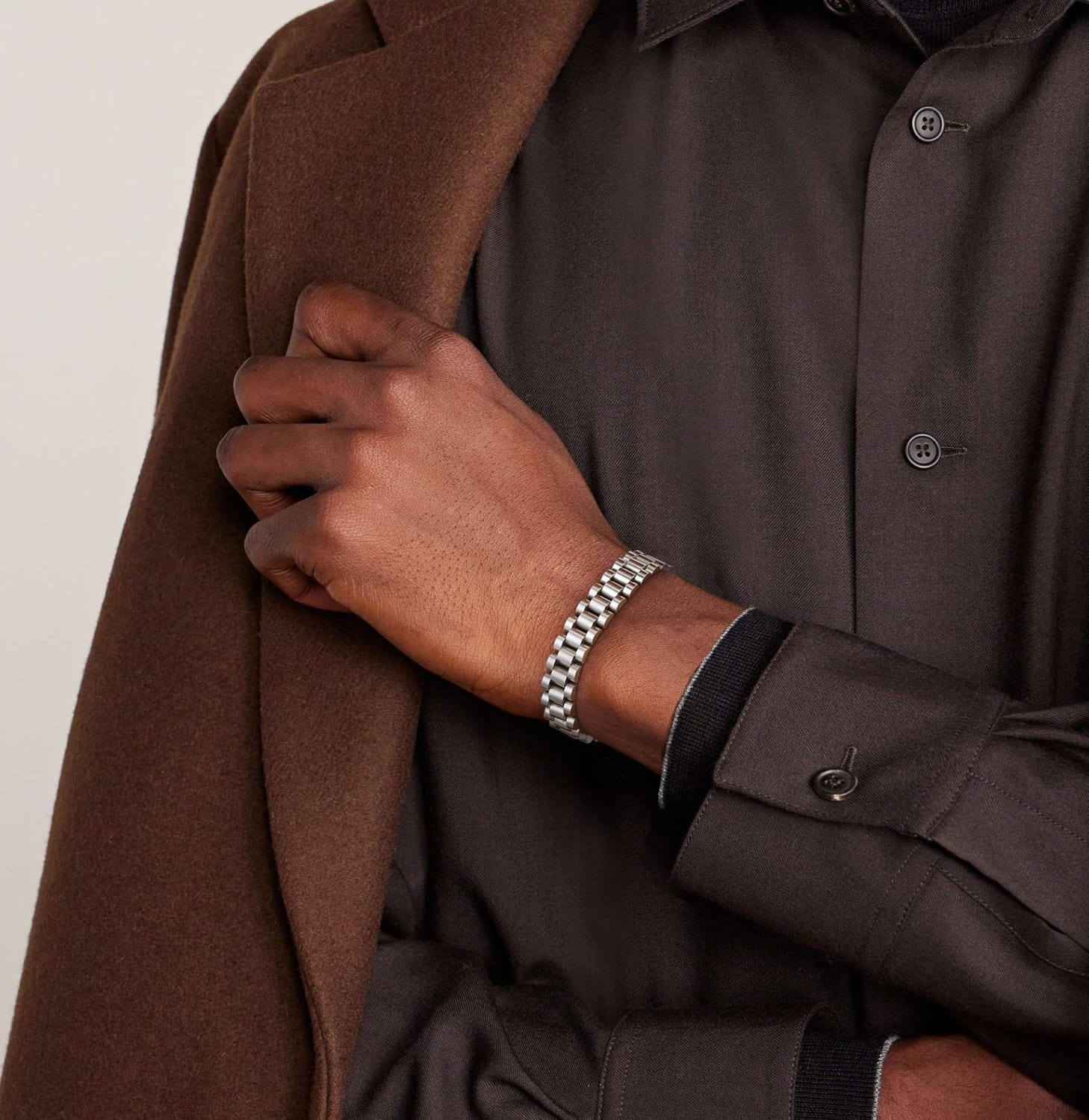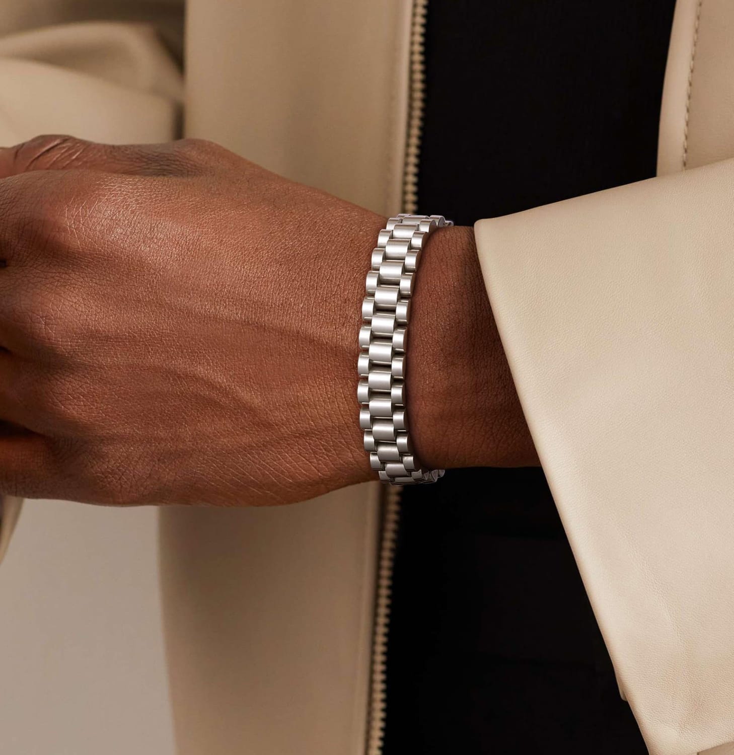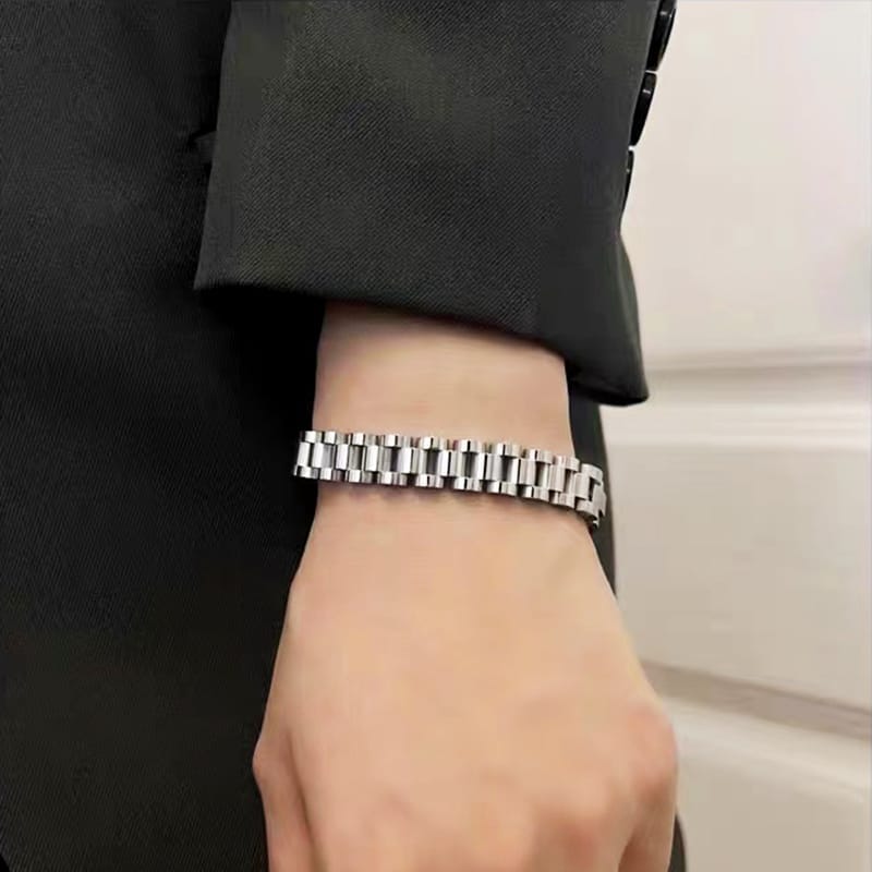 This elegant tungsten bracelet features high color retention gold and silver plating, waterproof design. Its business-style design suits office wear and formal occasions, offering timeless elegance with a chain-link style. The hypoallergenic material ensures comfort for sensitive skin while maintaining a stylish appearance.